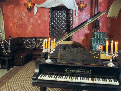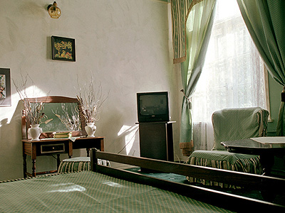 Хотелската част разполага с 20 стаи (единични, двойни и тройни) и 8 апартамента с уникален, артистичен дизайн и интериор; сауна; рум-сървиз; зала за конференции; Биг Бен бар с камина; галерия за антики и изобразително изкуство с постоянна изложба на художници; охраняем паркинг; офис на HVB Банк “Биохим” АД.
